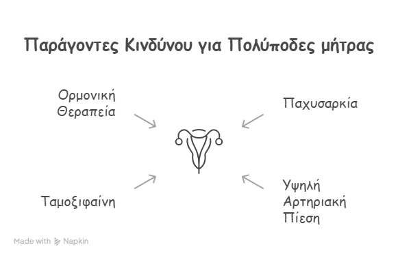 Το γεγονός ότι παρουσιάζονται ένας ή συνδυασμός κάποιων παραγόντων κινδύνου δεν υποδηλώνει απαραίτητα ότι θα αναπτυχθούν πολύποδες μήτρας.